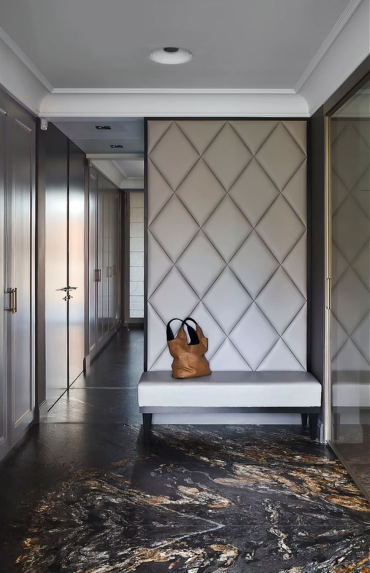 Meble Wirchomski-Line to sztuka użytkowa, gdzie wyrafinowane i szlachetne detale są równie przemyślane jak sama funkcjonalność. Wyjątkowa kolorystyka, synergia szlachetnych kruszców, drewna i szkła oraz magia ręcznie układanych płatków srebra budują ich wyjątkowość w kuchni i poza nią.